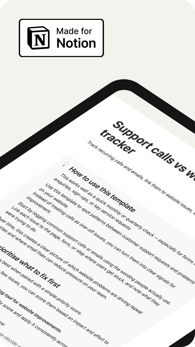 The Priority scoring tool for website improvements shows how to score issues consistently and choose what to tackle next. Check the free resource: How do we decide what to fix first on our website?